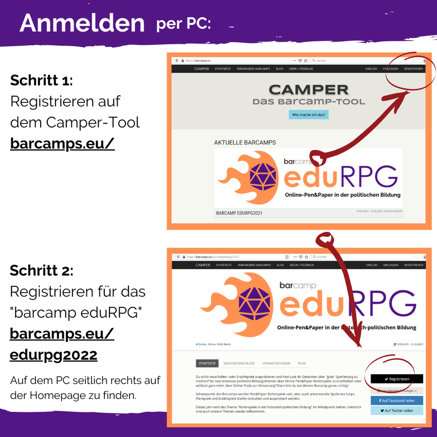 Die Spielleiter*innen freuen sich, wenn sie etwas Vorlauf haben und wissen, wie viele teilnehmen werden. Also tragt euch gern schon jetzt für die Runden ein, die euch interessieren.