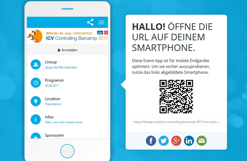 Das Dresdner Start-up lineupr.com unterstützt unser 1. ICV Controlling Barcamp (24. Juni im #openspace Berlin) mit seiner App-Software. Das Startup verspricht, „jedem Veranstalter ein Werkzeug in die Hand zu geben, mit dessen Hilfe er schnell, einfach und zu einem fairen Preis eine inhaltlich überzeugende und bereichernde App für sein Event erstellen kann.“ – Wir haben es ausprobiert, das Ergebnis – unsere ICV Controlling Barcamp App –  kann sich jeder selbst anschauen.