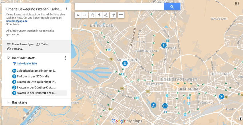 Orte der urbanen Bewegungsszenen Karlsruhe